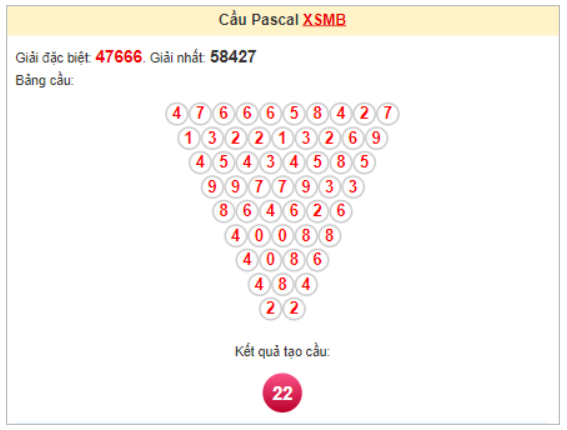 Kết quả từ soi cầu Pascale là cặp số may mắn: 22