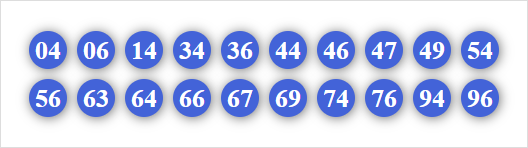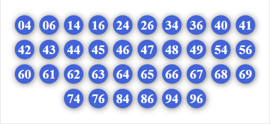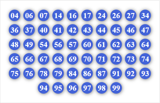 01, 02, 03, 04, 05, 06, 07, 08, 09, 10, 11, 12, 13, 14, 15, 16, 17, 18, 19, 40, 41, 42, 43, 44, 45, 46, 47, 48, 49, 90, 91, 92, 93, 94, 95, 96, 97, 98