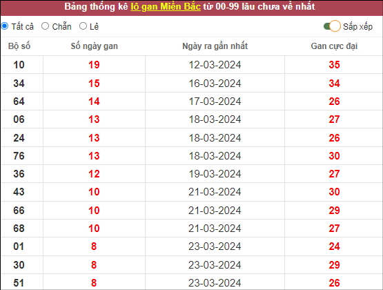 ⭐️Lô gan MB lâu ra nhất: 10 – 34 – 64 – 06 – 24