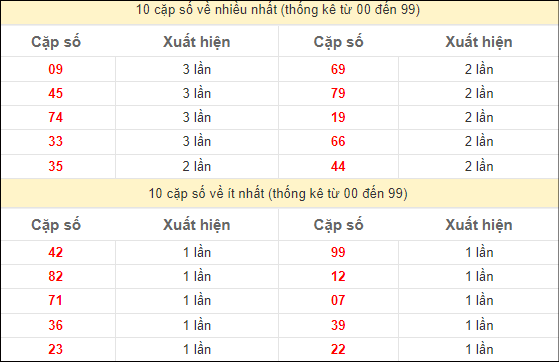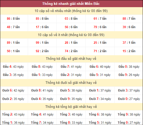 Thống kê 2 số cuối giải đặc biệt miền Bắcđ đến ngày 1 tháng 4