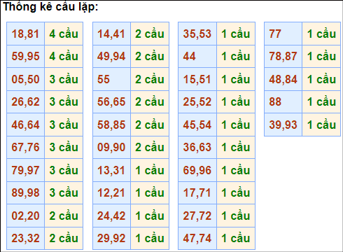 Cặp lô 38, 54, 56, 79 có độ dài 4 ngày