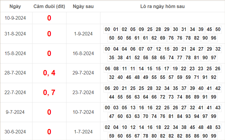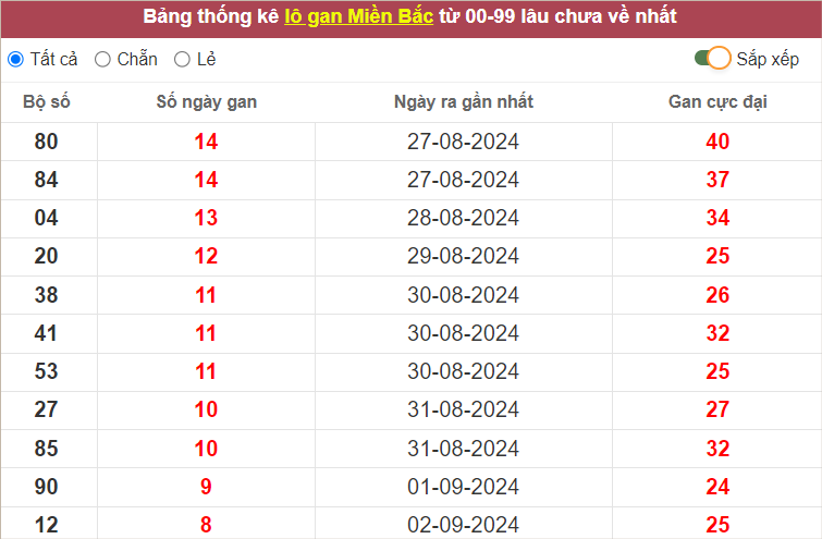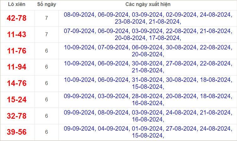 Dàn lô hôm nay miền Bắc bất bại ngày 11/9/2024