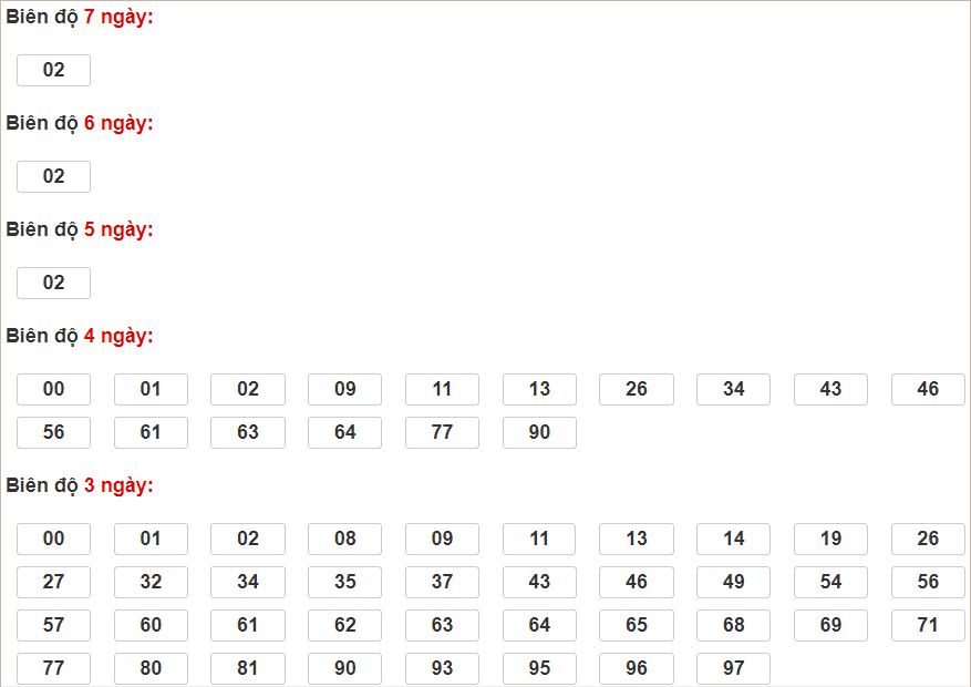 Cặp lô 07, 08, 09, 67, 71, 96 có độ dài 3 ngày.