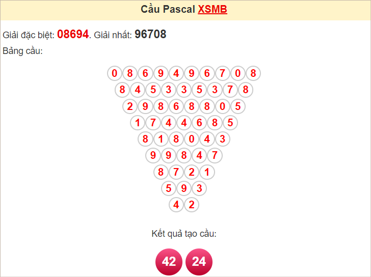 Kết quả từ soi cầu Pascale là cặp số may mắn: 42 24