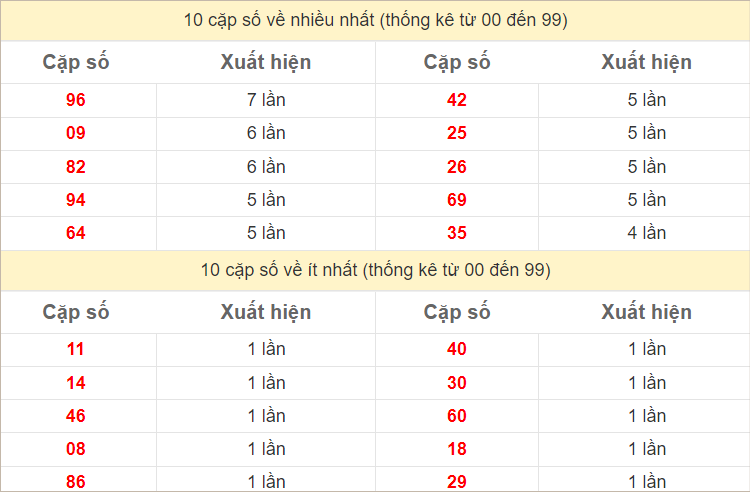 Thống kê hai số cuối giải đặc biệt miền Bắc ngày 11/9