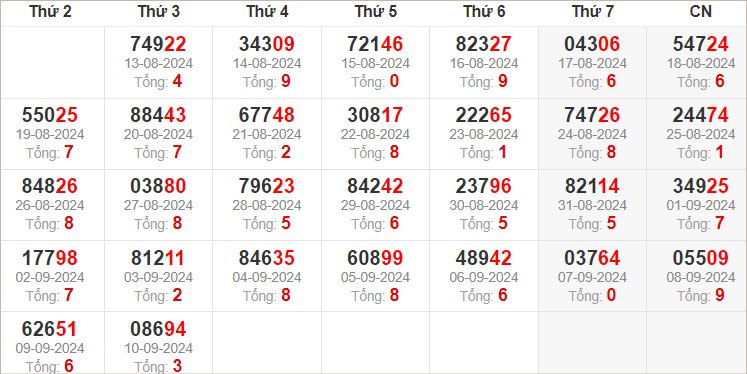 Xem lại bảng KQXSMB ngày 10-9-2024 hôm qua