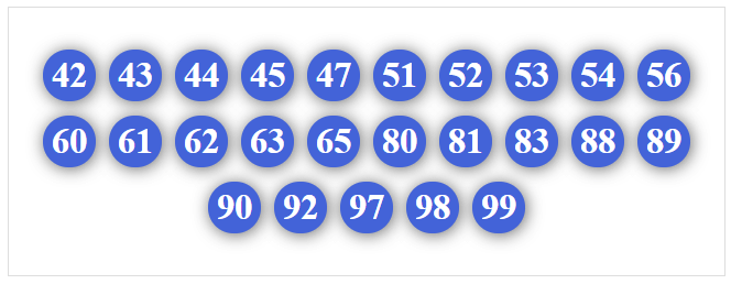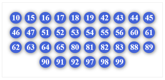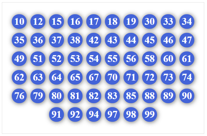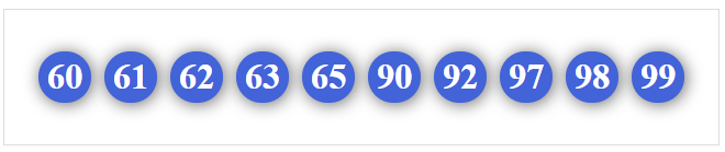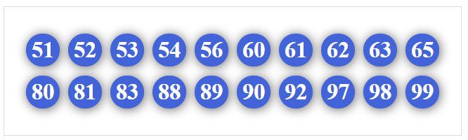 00, 01, 02, 03, 04, 05, 06, 07, 08, 09, 60, 61, 62, 63, 64, 65, 66, 67, 68, 69