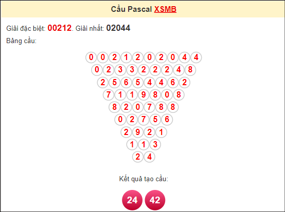 Kết quả từ soi cầu Pascale là cặp số may mắn: 24 42