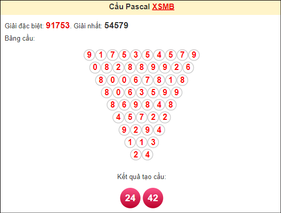 Kết quả từ soi cầu Pascale là cặp số may mắn: 24 42