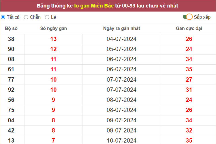 ⭐️Lô gan MB lâu ra nhất: 38 – 90 – 08 – 61 – 77