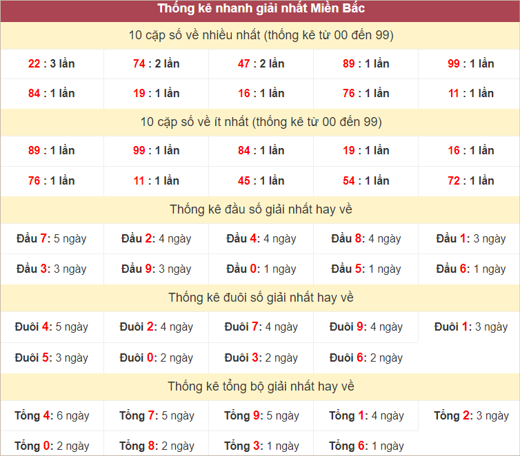 Thống kê hai số cuối giải đặc biệt miền Bắc ngày 18/7