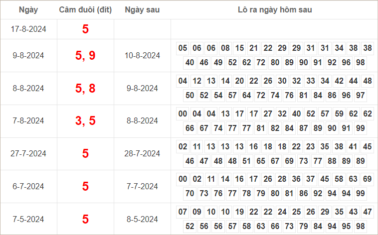 Dàn lô hôm nay miền Bắc bất bại ngày 18/8/2024