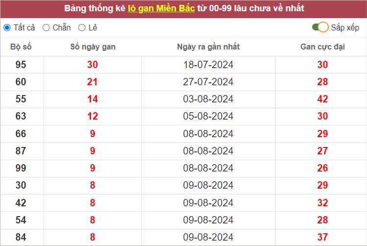 ⭐️ Lô gan XSMB lâu ra nhất: 95 – 60 – 55 – 63 – 66