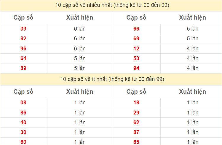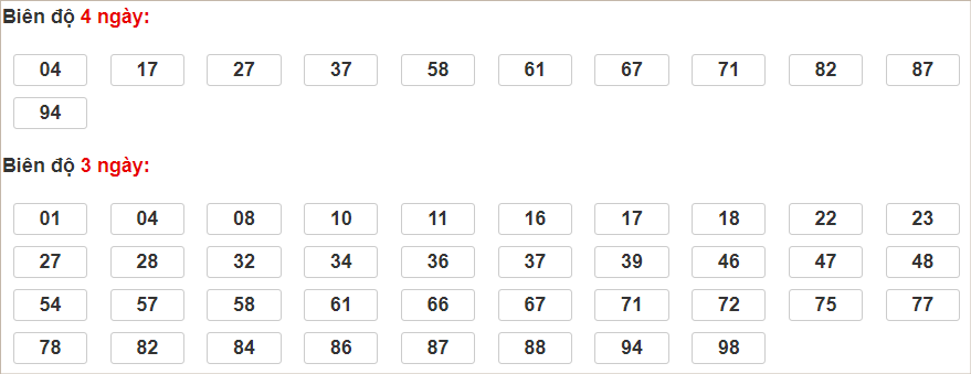 Cặp lô 04 (vị trí ghép cầu 0-11), 17, 27, 37, 58, 61, 67, 71, 82, 87, 94