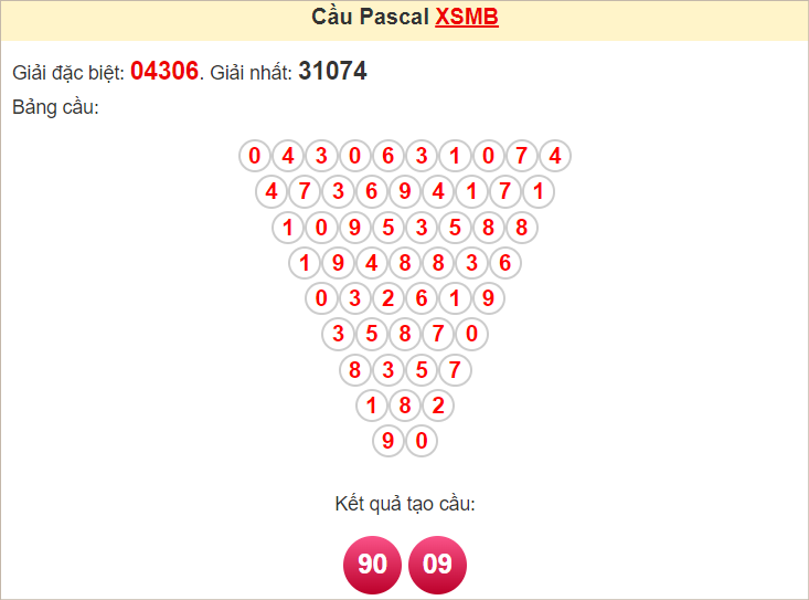 Kết quả từ soi cầu Pascale là cặp số may mắn: 90 09