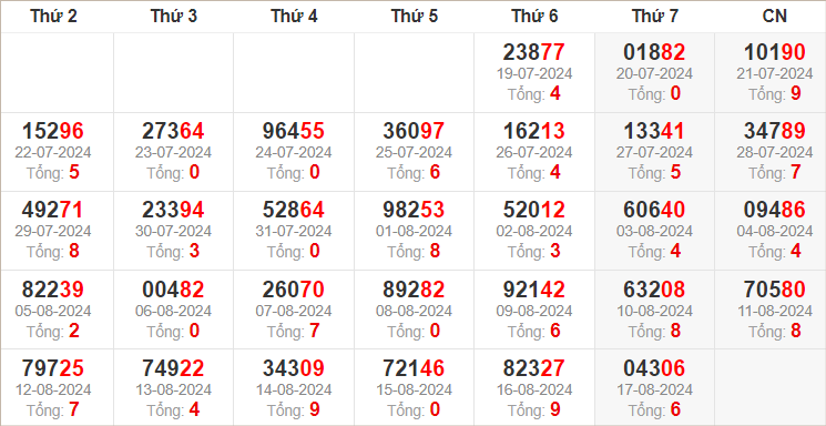 Dàn đặc biệt 10 số ngày 18/8/2024