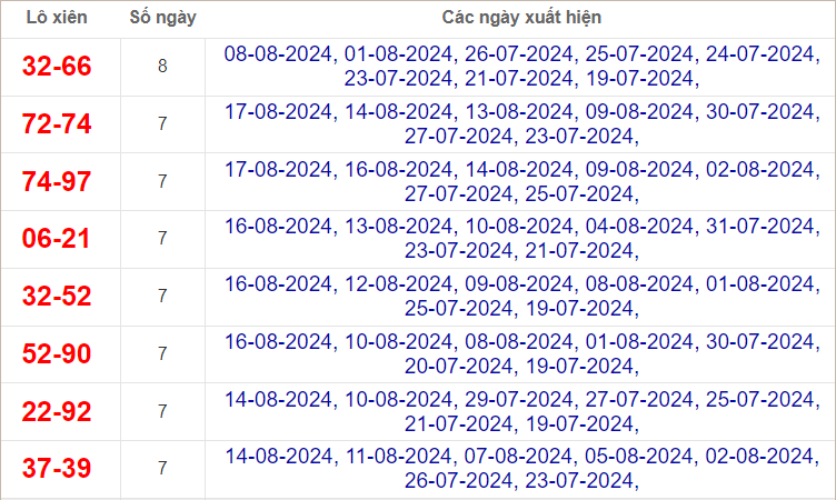 Cầu lô chạy 4 ngày qua (cầu dài nhất)