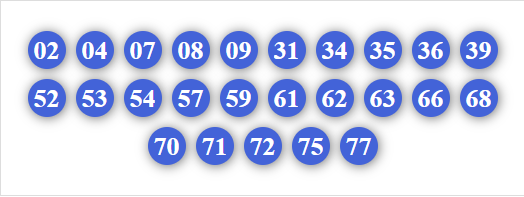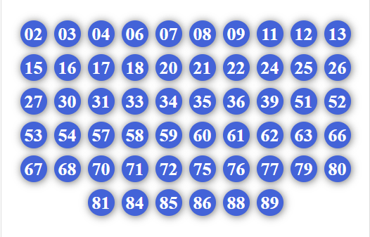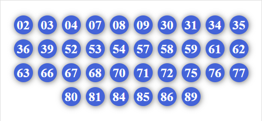 30, 31, 32, 34, 35, 36, 37, 38, 39, 60, 61, 62, 63, 64, 65, 67, 68, 69, 70, 71, 72, 73, 74, 75, 76, 78, 79, 90, 91, 92, 93, 94, 95, 96, 97, 98