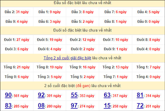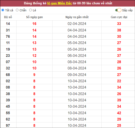 ⭐️Thống kê lô gan miền Bắc lâu ra nhất: 14 – 31 – 76 – 11 – 19