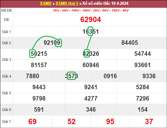 Xem lại bảng KQXSMB ngày 18/4/2024 hôm qua