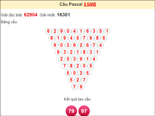 Kết quả từ soi cầu Pascale là cặp số may mắn: 79 97