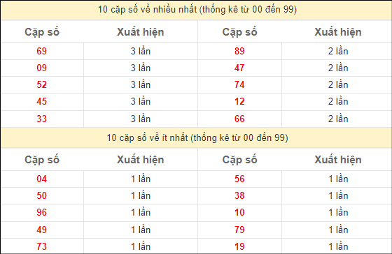 ⭐️ Thống kê tần suất các cặp lô về nhiều trong 10 ngày gần đây: 10, 69 (8 lần), 16 (7 lần), 52, 61 (6 lần), 22, 27, 41 (5 lần)