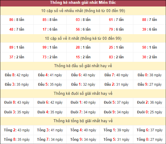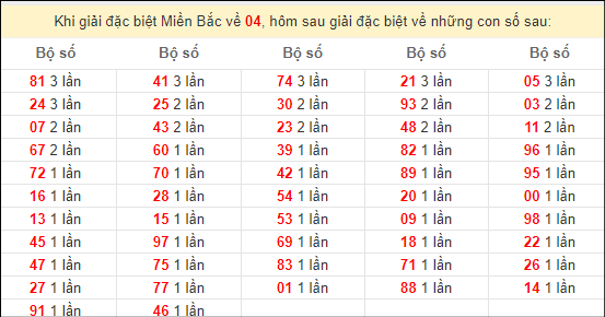 Thống kê hai số cuối giải đặc biệt miền Bắc ngày 19 tháng 4