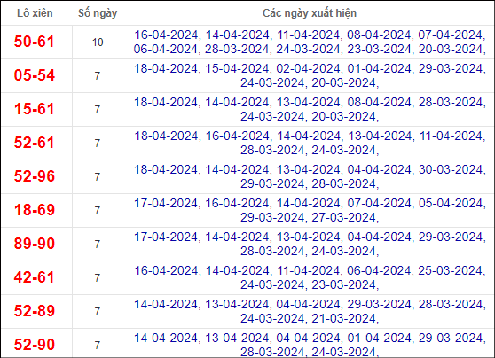 Cặp lô 49, 61, 91 có độ dài 3 ngày.