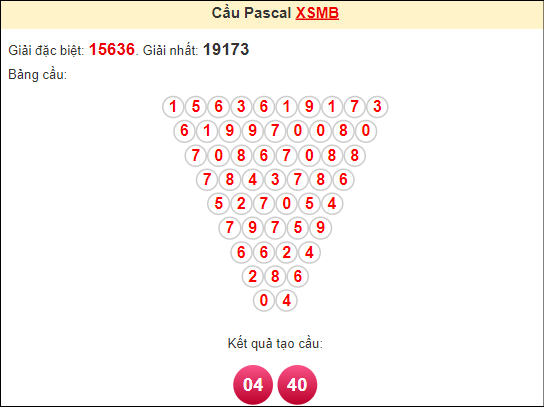 Kết quả từ soi cầu Pascale là cặp số may mắn: 04 40