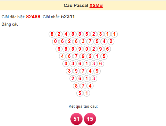 Kết quả từ soi cầu Pascale là cặp số may mắn: 15 51