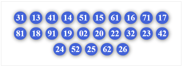 00, 01, 02, 03, 04, 05, 06, 07, 08, 09, 50, 51, 52, 53, 54, 55, 56, 57, 58, 59