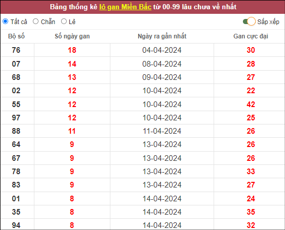 ⭐️Thống kê lô gan MB lâu ra nhất: 76 – 07 – 68 – 02 – 55