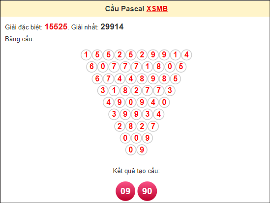Kết quả từ soi cầu Pascale là cặp số may mắn: 09 90