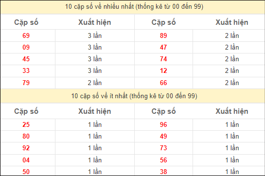 ⭐️ Thống kê tần suất các cặp lô về nhiều trong 10 ngày gần đây: 22, 69, 89, 92 (7 lần), 71, 90 (6 lần), 16, 33 (5 lần)