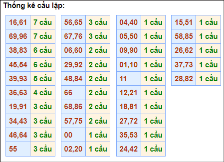 💰 Cầu lô 2 nháy về liên tục 4 kỳ trở lên: 66, 69, 96