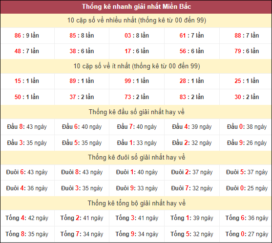 Thống kê hai số cuối giải đặc biệt miền Bắc ngày 23/4