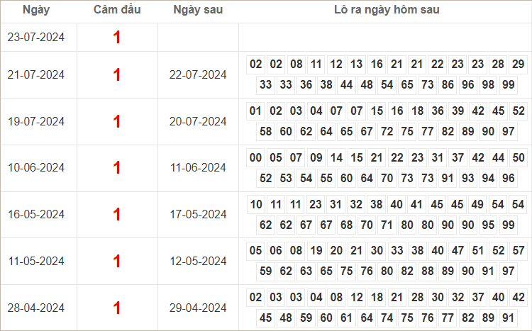 Dàn lô hôm nay miền Bắc bất bại ngày 24/7/2024