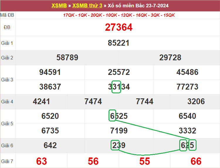 Xem lại bảng KQXSMB ngày 23-7-2024 hôm qua