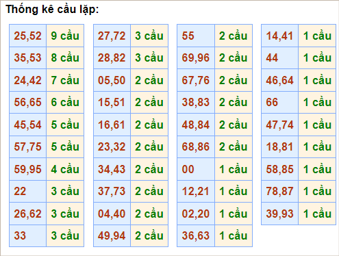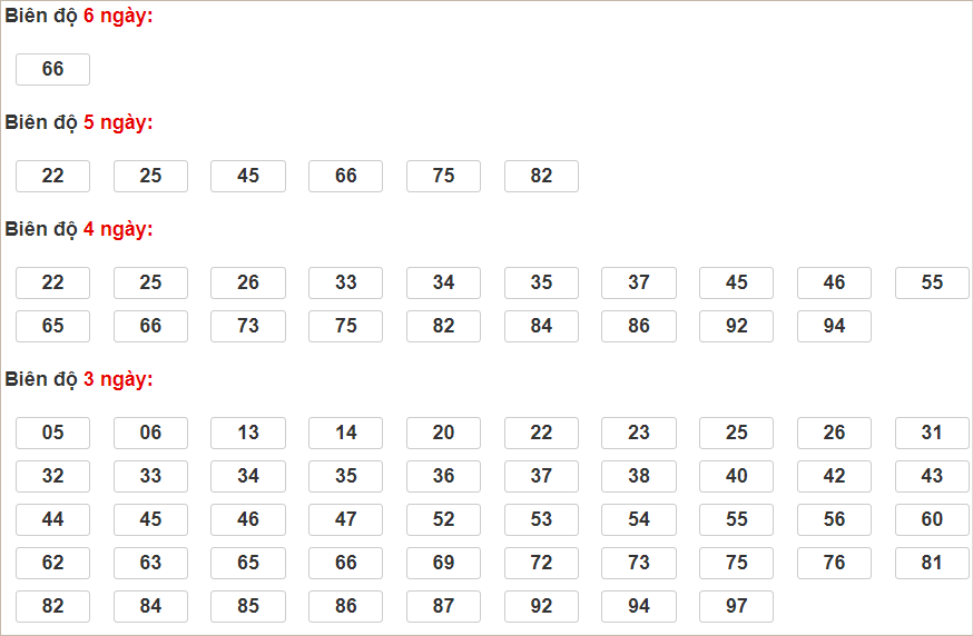 Cặp lô 06, 35, 40, 56, 73, 75, 84, 86 có độ dài 3 ngày.