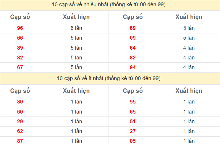 Các cặp số nóng nhất hôm nay: 59 – 47 – 87 – 25 – 52