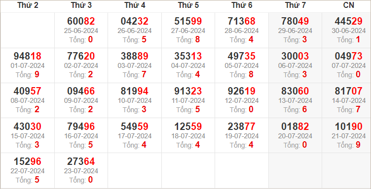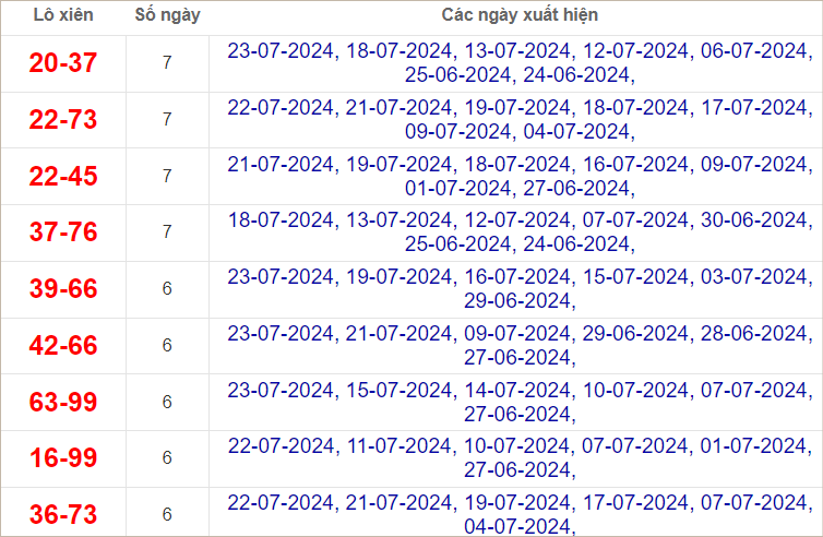 Dàn 20 số trong ngày 24/7