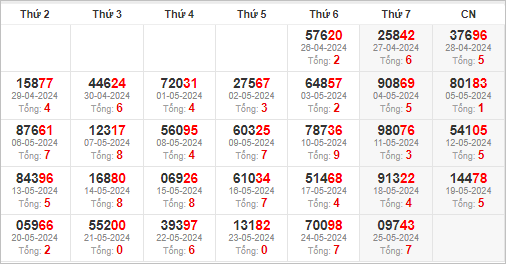 Dàn đặc biệt 10 số ngày 26/5/2024