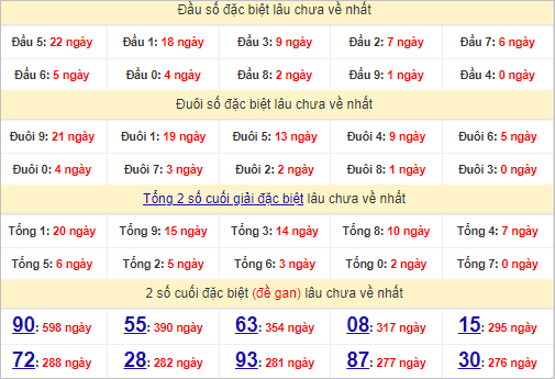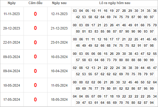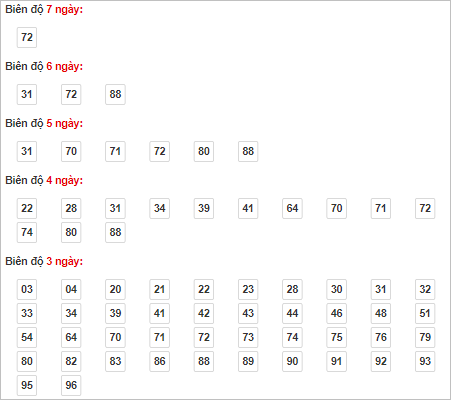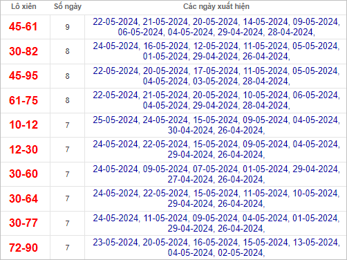 Cặp lô 42, 47, 62, 84, 88 có độ dài 3 ngày.