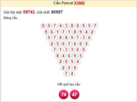 Kết quả từ soi cầu Pascale là cặp số may mắn: 74 47