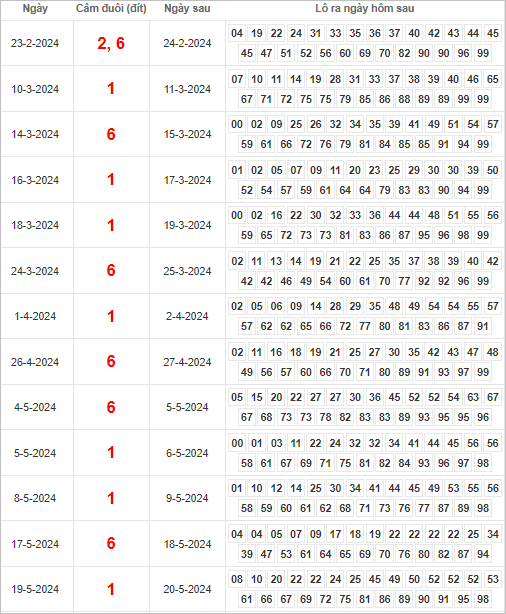 Soi cầu lô 2 nháy ngày 26/5/2024 hôm nay: