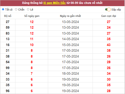 ⭐️ Lô gan XSMB lâu ra nhất: 27 – 59 – 83 – 13 – 16
