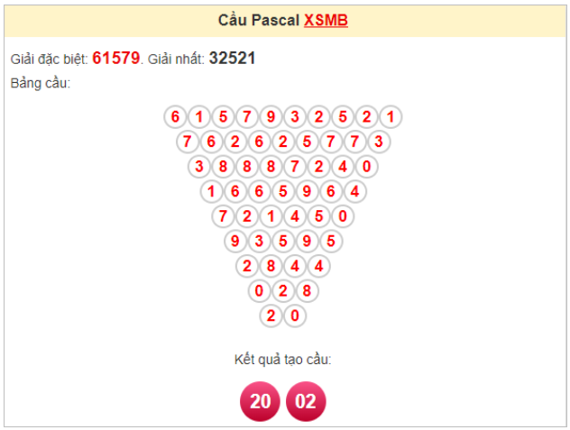Kết quả từ soi cầu Pascale là cặp số may mắn: 02 – 20