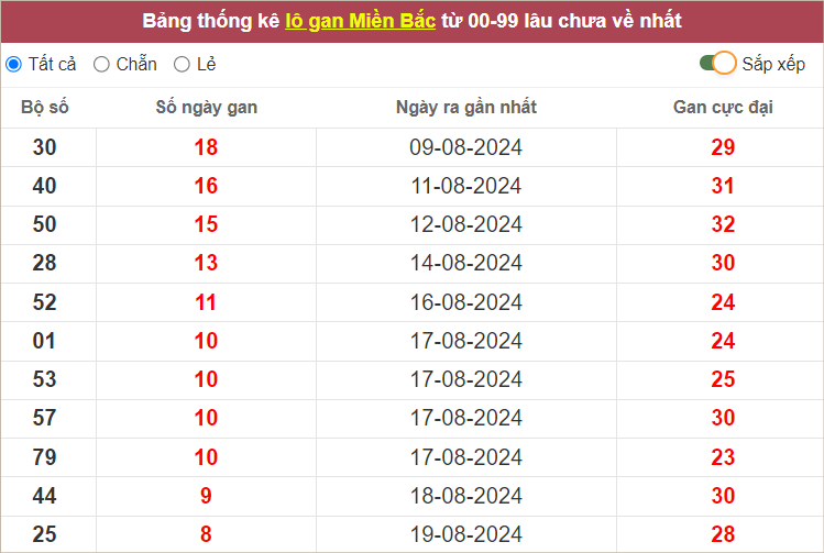 ⭐️ Lô gan miền Bắc lâu ra nhất: 30 – 40 – 50 – 28 – 52