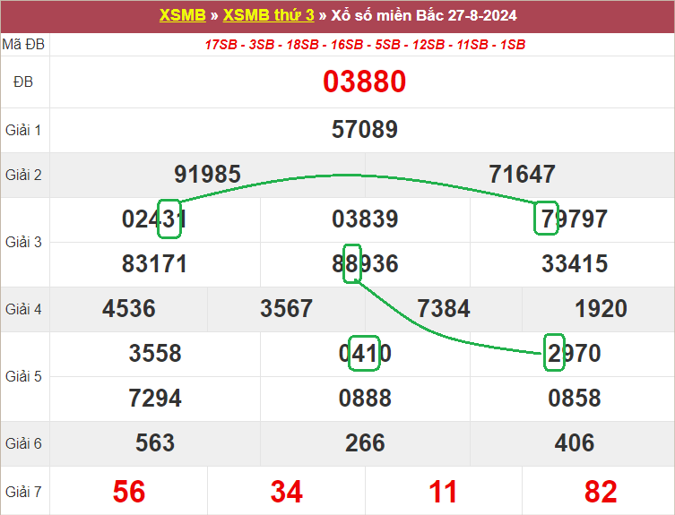 Xem lại bảng KQXSMB ngày 27-8-2024 hôm qua