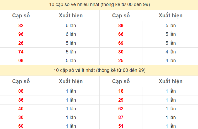 Các cặp số nóng nhất hôm nay: 38 – 90 – 29 – 32 – 92